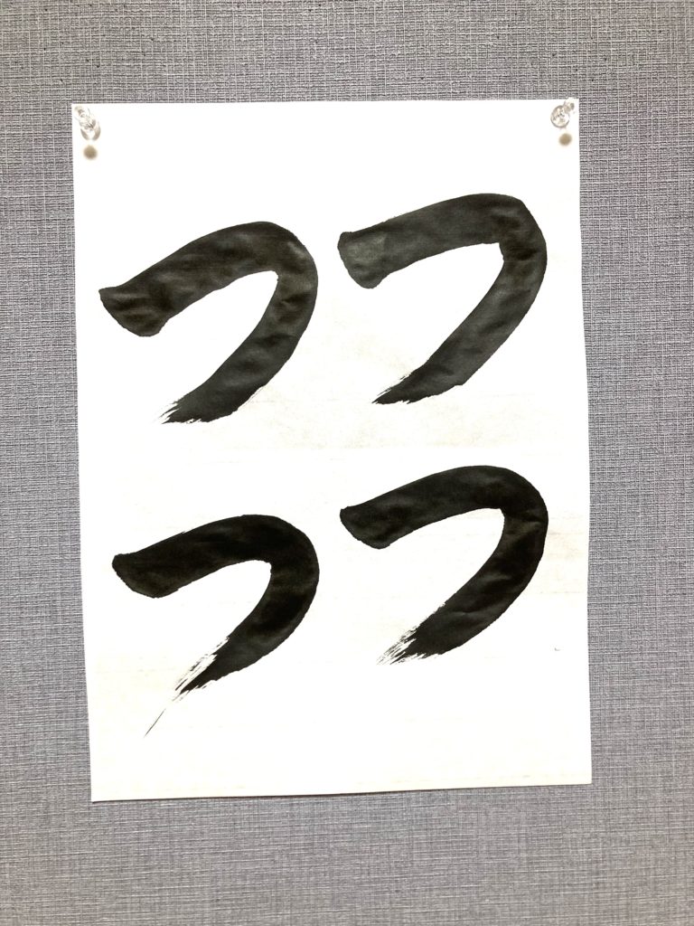 どうしてもカーブのところが尖ってしまって、平仮名の「つ」に見えません。